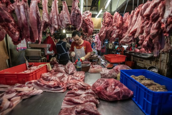Previous Image Next Image Vendors chop slabs of meat and hang them for sale at a wet market in Taipei. Vendors chop slabs of meat and hang them for sale at a wet market in Taipei. (Jo-Anne McArthur / We Animals)