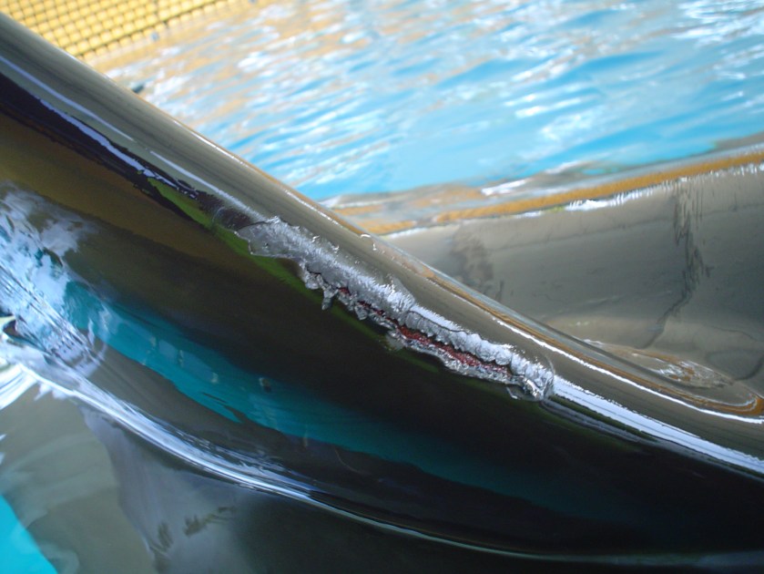 These two show Kohana’s dorsal fin and tail fluke, after she was bitten by Keto: