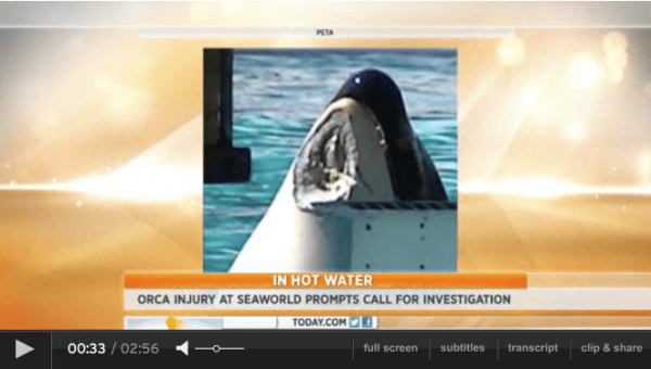 The video embedding has been disabled, which seems increasingly common with videos which show the husbandry practices behind killer whale shows. But click on the video image to be taken to the video.